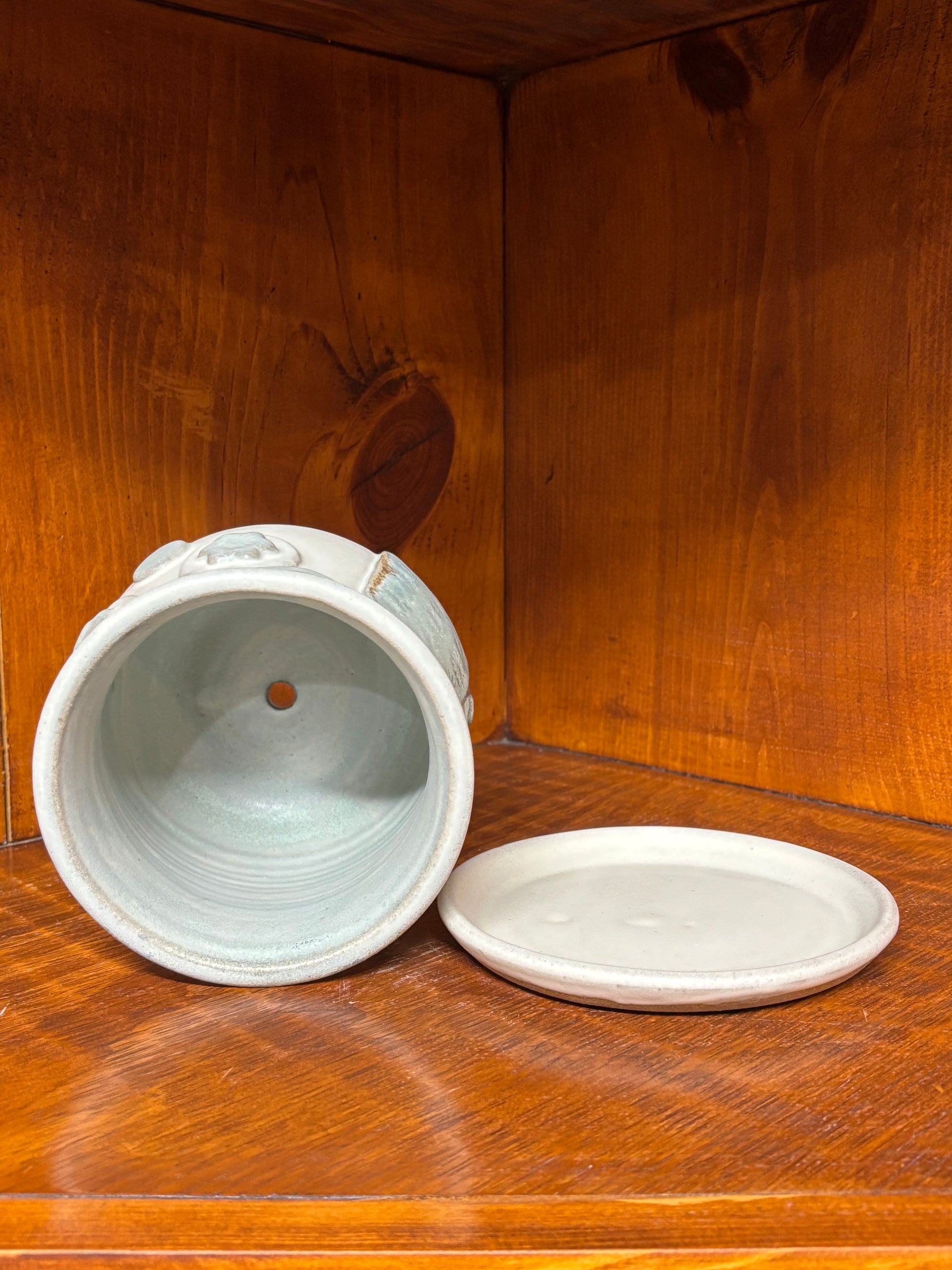Owl planter with drip plate and drainage hole